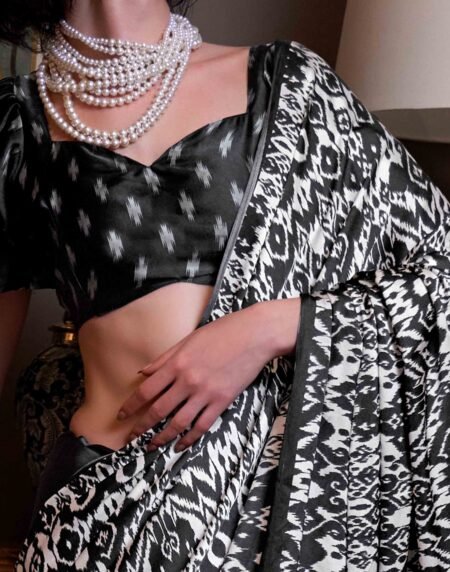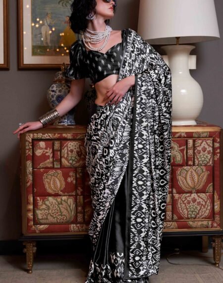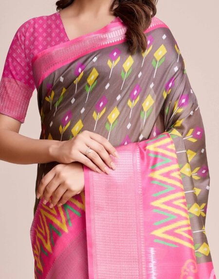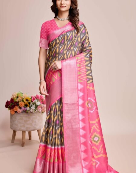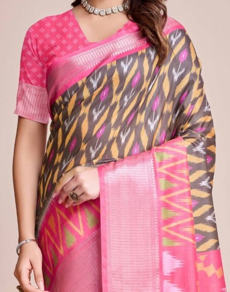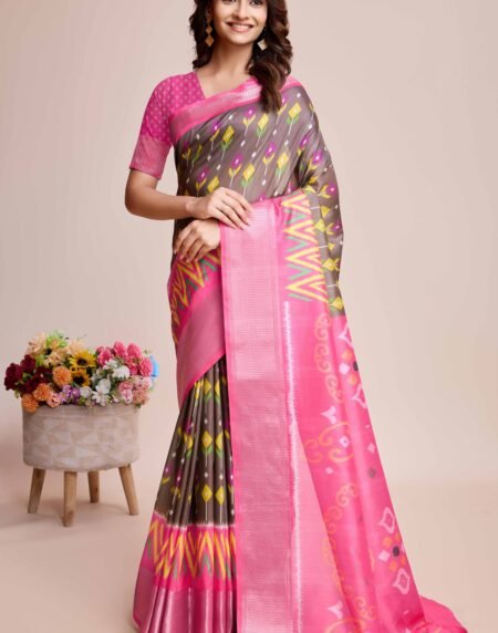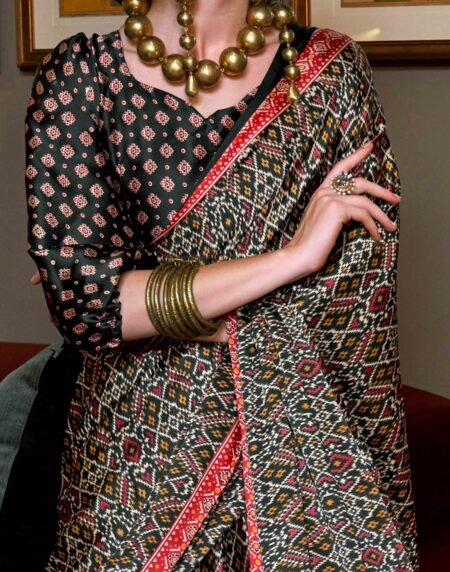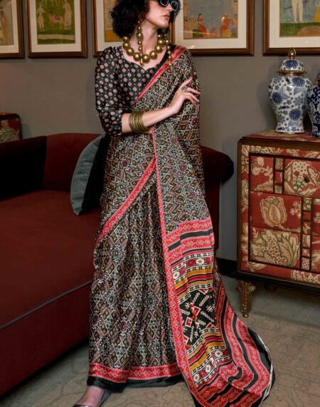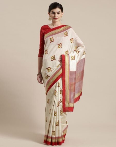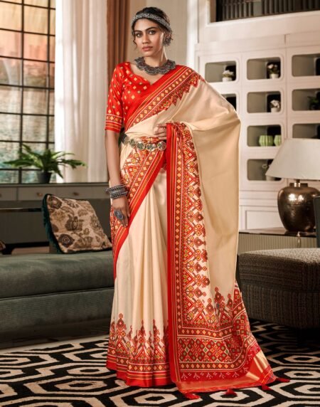 Adorable Cream-Red Colored Festive Wear Geometric Foil Print Patola Silk Saree
