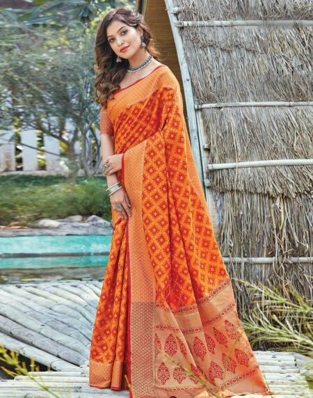 Ideal Orange Colored Festive Wear Patan Patola Silk Saree