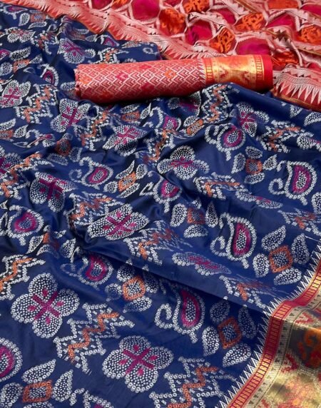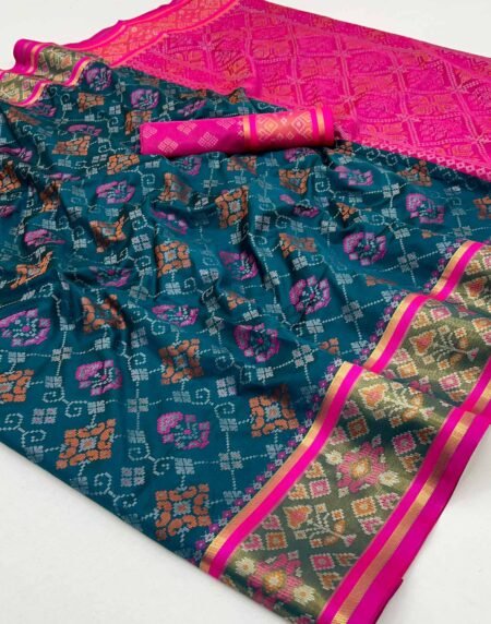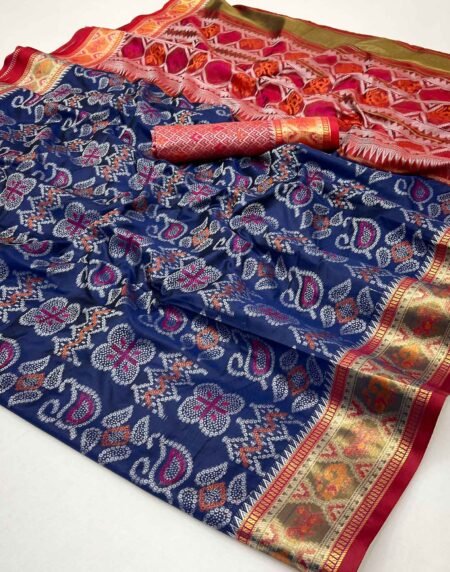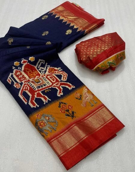 Navy Blue Patola Printed Dola Silk Saree