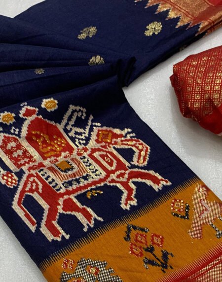 Navy Blue Woven Art Silk Patola Saree