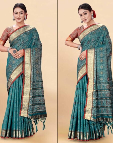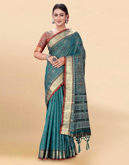 Morpich Blue Woven Art Silk Patola Saree