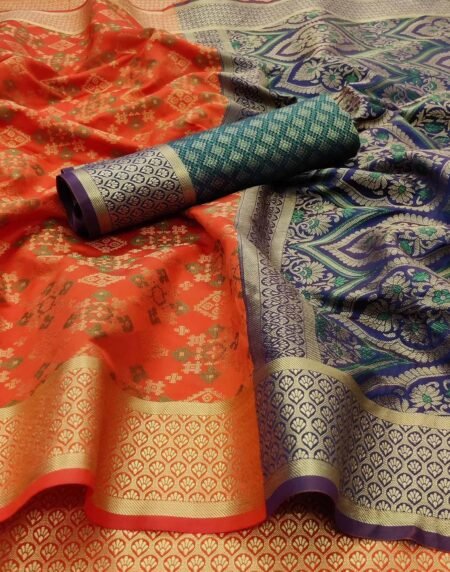 Orange Festive Wear Woven Silk Saree With Patola Rich Pallu