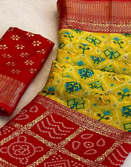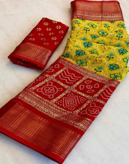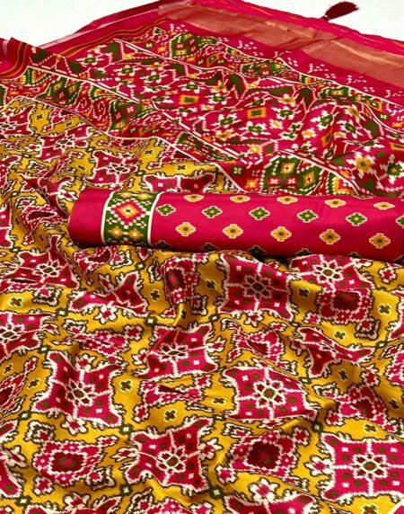 Yellow Patola Printed Dola Silk Saree With Zari Border