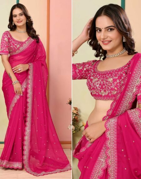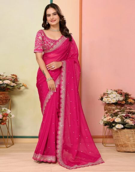 Rani Pink Sequins Embroidered Embroidered Organza Saree