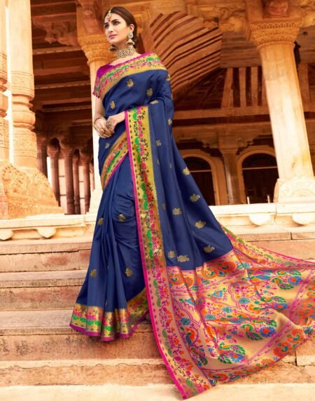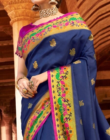 Majesty Navy Blue Colored Festive Wear Woven Paithani Silk Saree