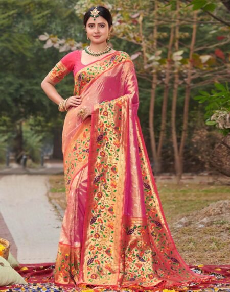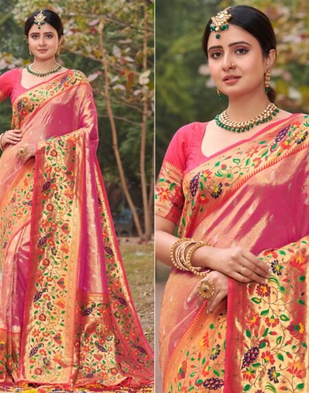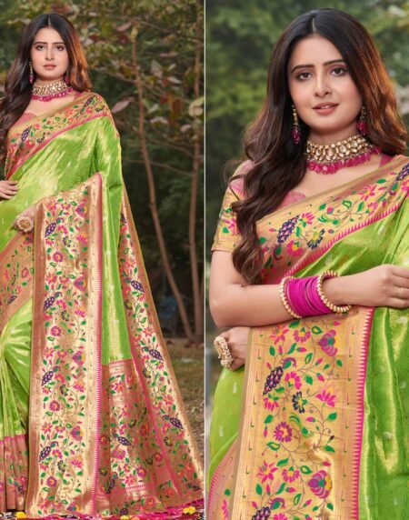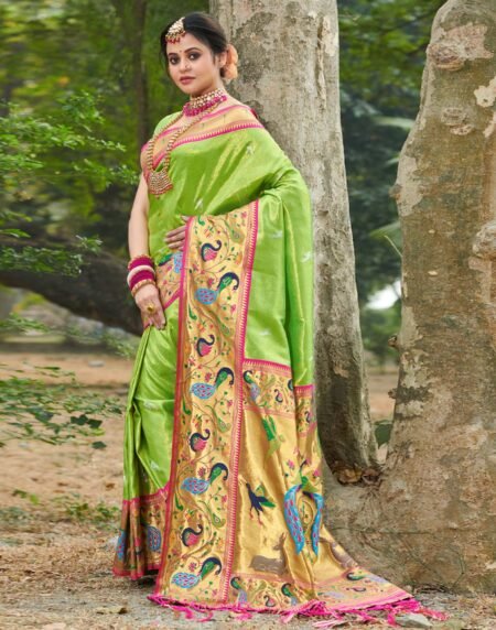 Parrot Green Woven Art Silk Paithani Saree With Tassels