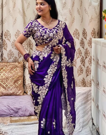 Graceful Violet Silk Blend Saree with Butta Motifs and Exquisite Coding Embroidery