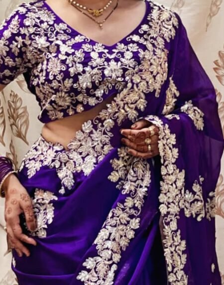 Green Organza Saree with Embroidery on the Edges for a Graceful Contemporary Look