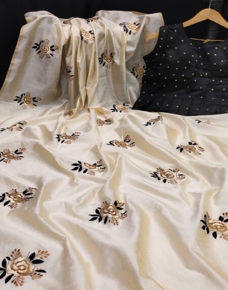 Offwhite Casual Wear Floral Embroidered Silk Saree