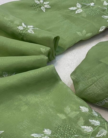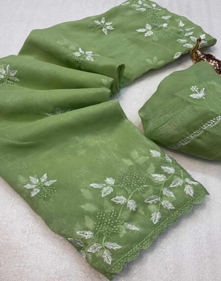 Green Organza Saree with Embroidery on the Edges for a Graceful Contemporary Look