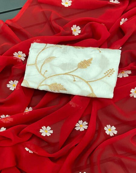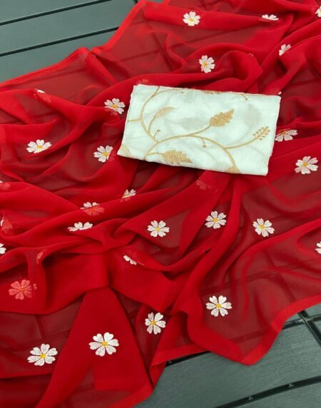 Red Floral Embroidered Georgette Saree