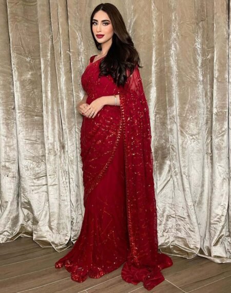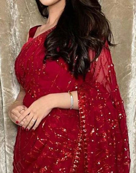 Red Sequins Embroidered Georgette Saree