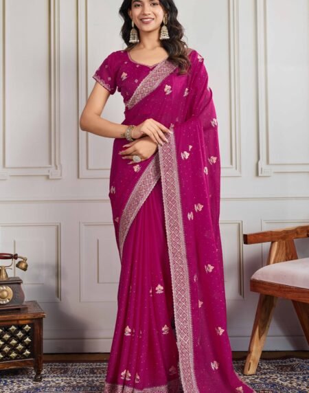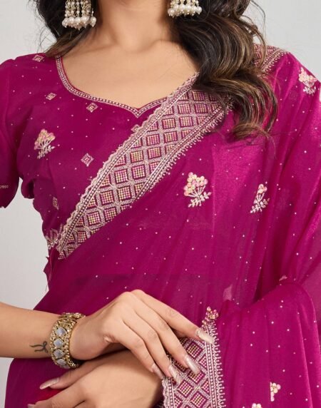 Pink Georgette Saree Featuring Embroidered and Stone Work