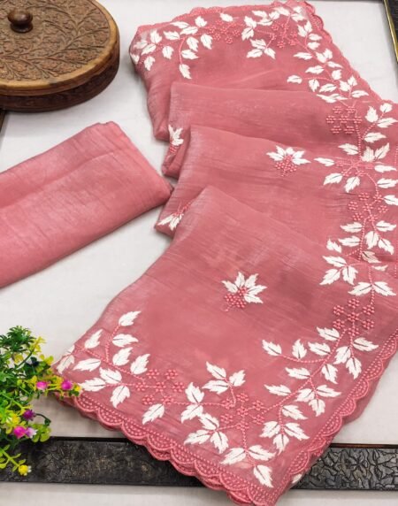 Peach Organza Saree Featuring Fine Floral Embroidery