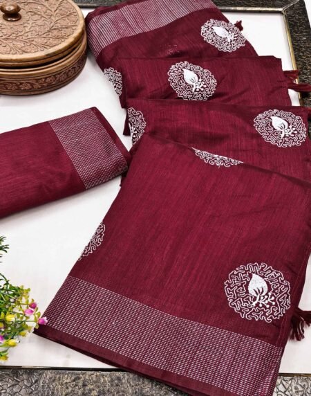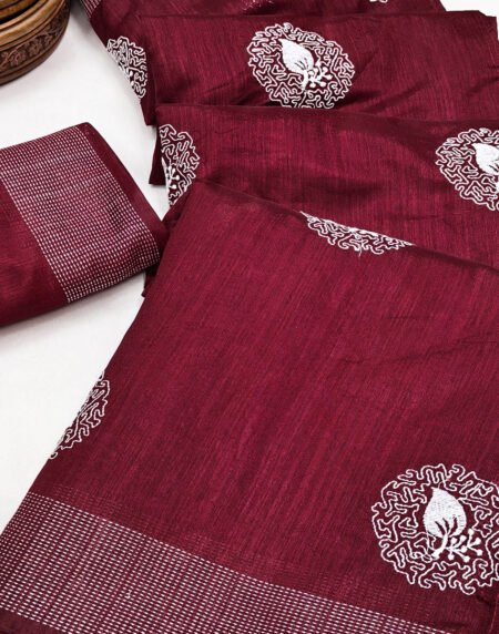 Maroon Embroidered Art Silk Saree Adorned with Classic Zari Weaving Details