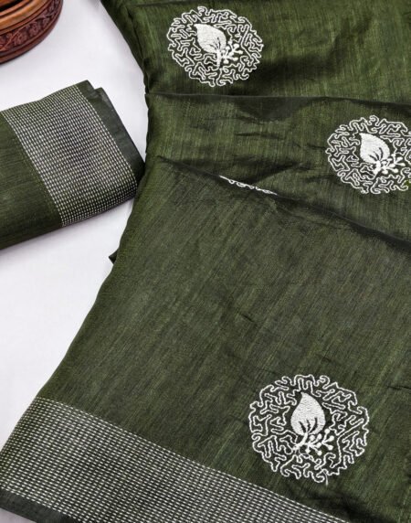 Green Art Silk Saree Adorned With Delicate Floral Embroidery & Stylish Tassel Pallu