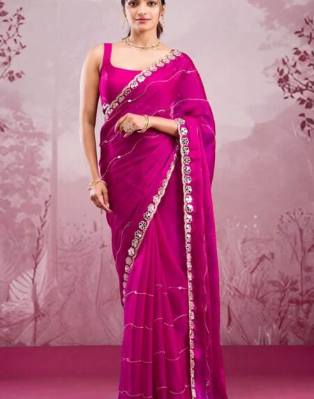 Pink Georgette Saree Featuring Embroidered and Stone Work