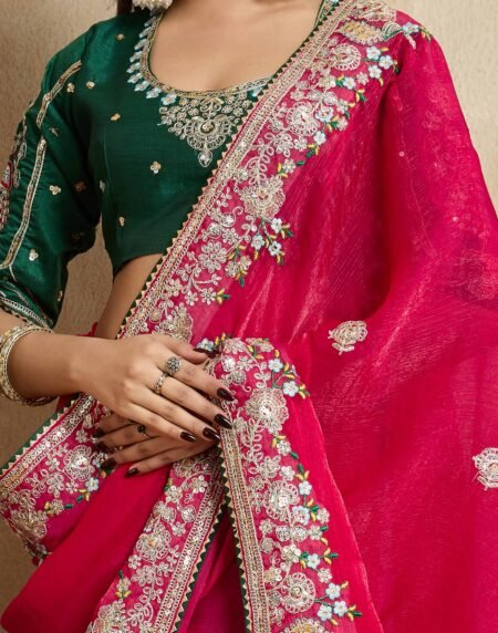 Pink Festive Wear Silk Blend Saree with Embroidery & Stones