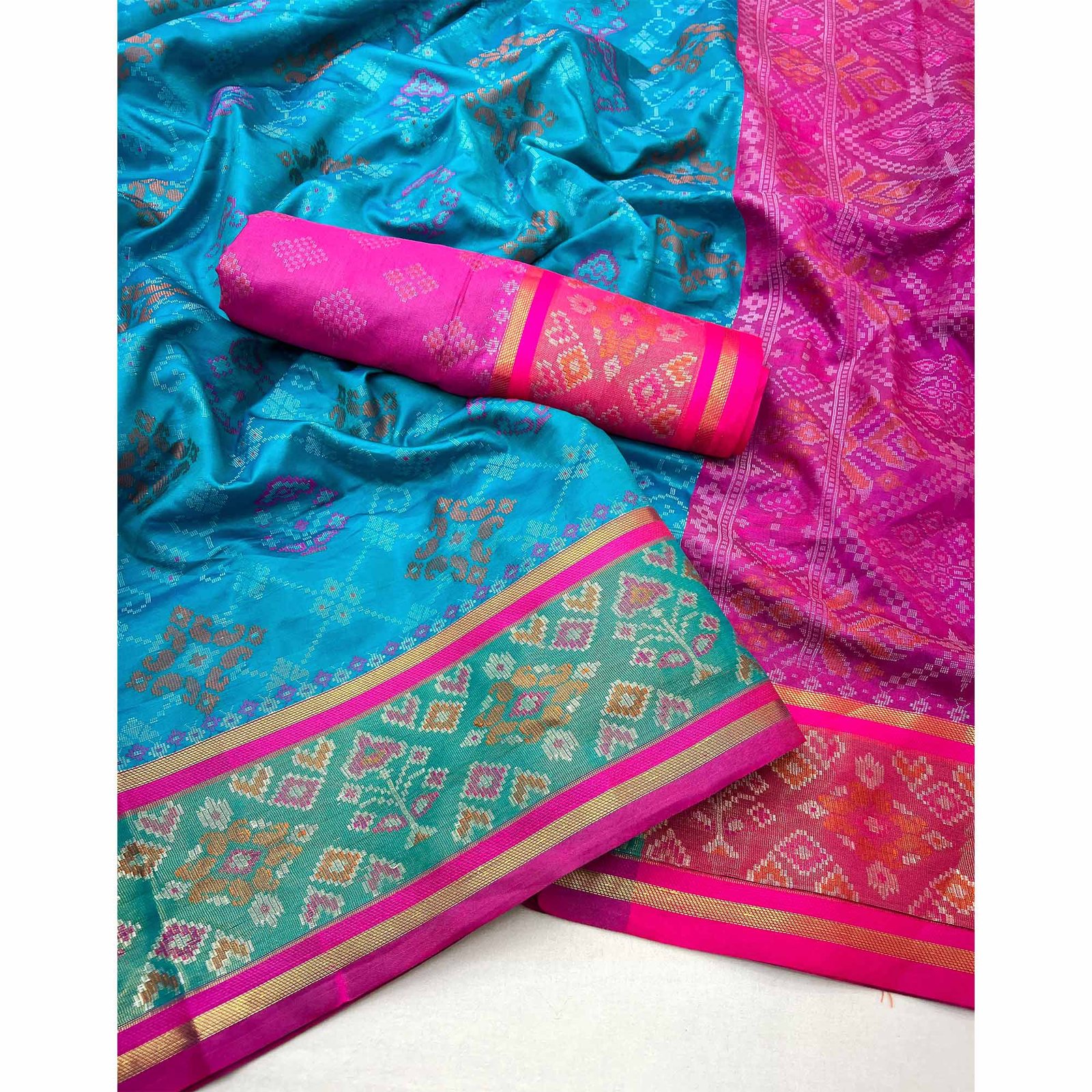 Blue colored saree is made from patola silk fabric which is highlighted with beautiful weaving work as shown. Comes along with unstitched jacquard blouse piece which you can customise as per your design/style. Occasion – You can wear this saree for festive and functions wear. Note:- the actual product may differ slightly in color and design from the one illustrated in the images when compared with computer or mobile screen.