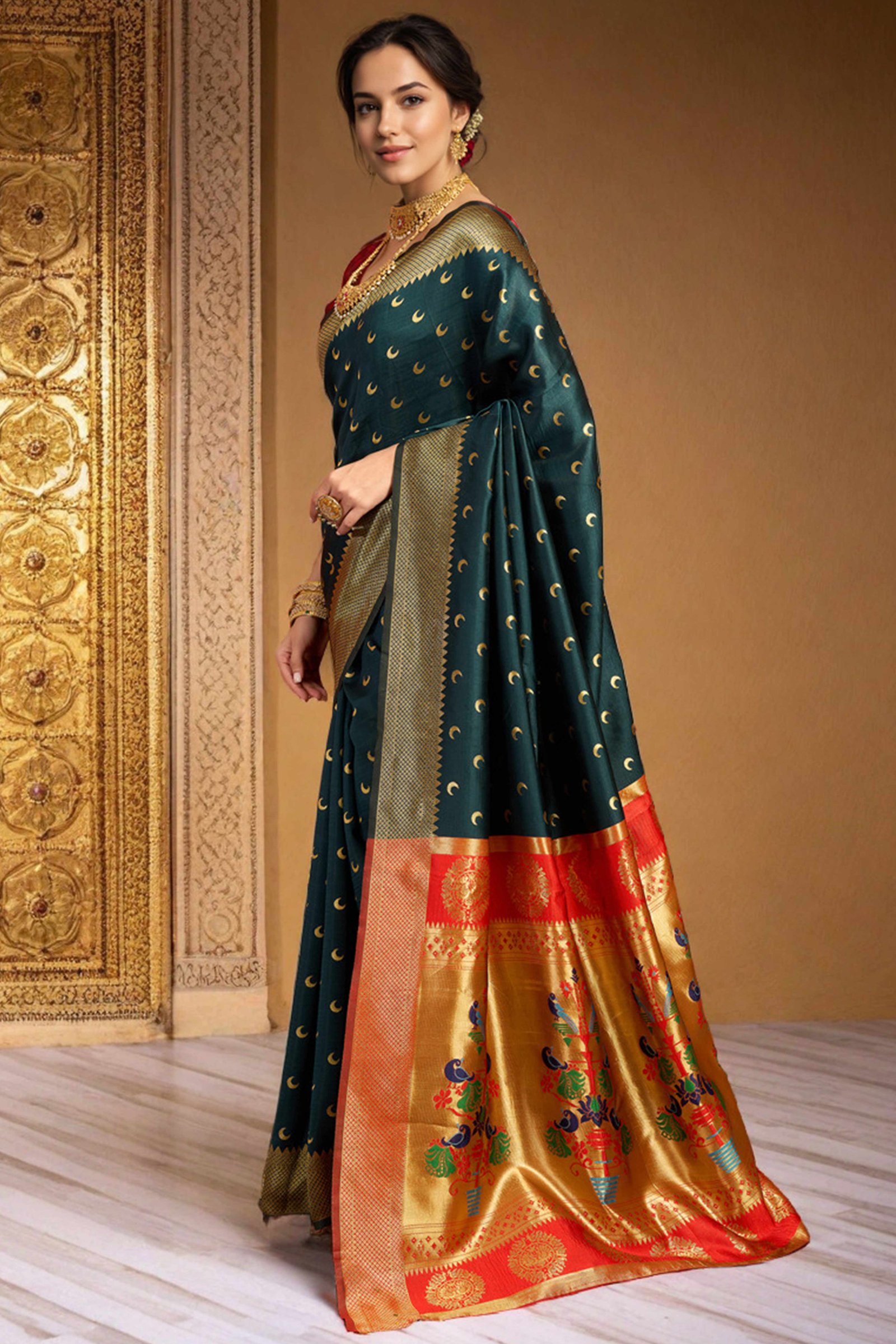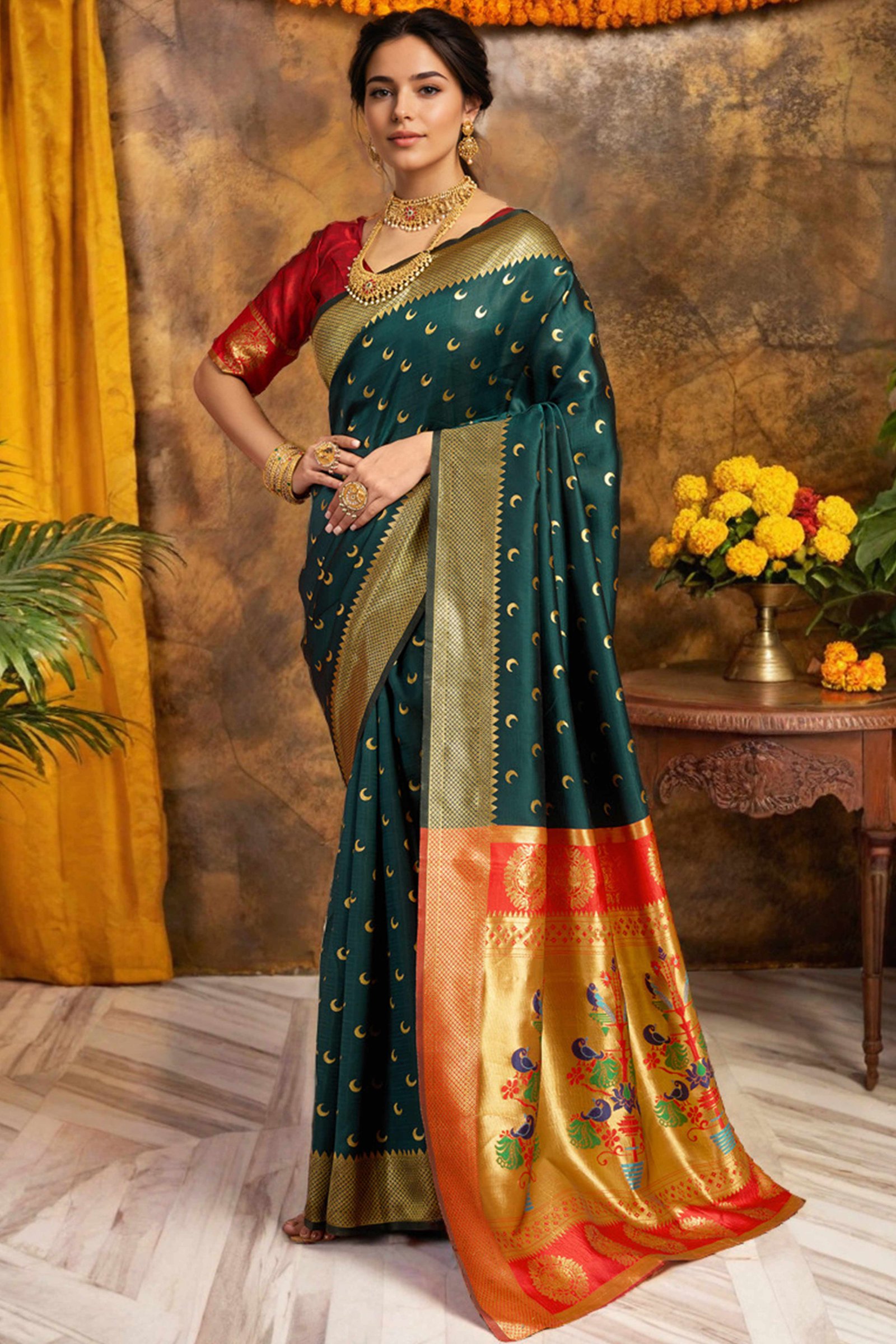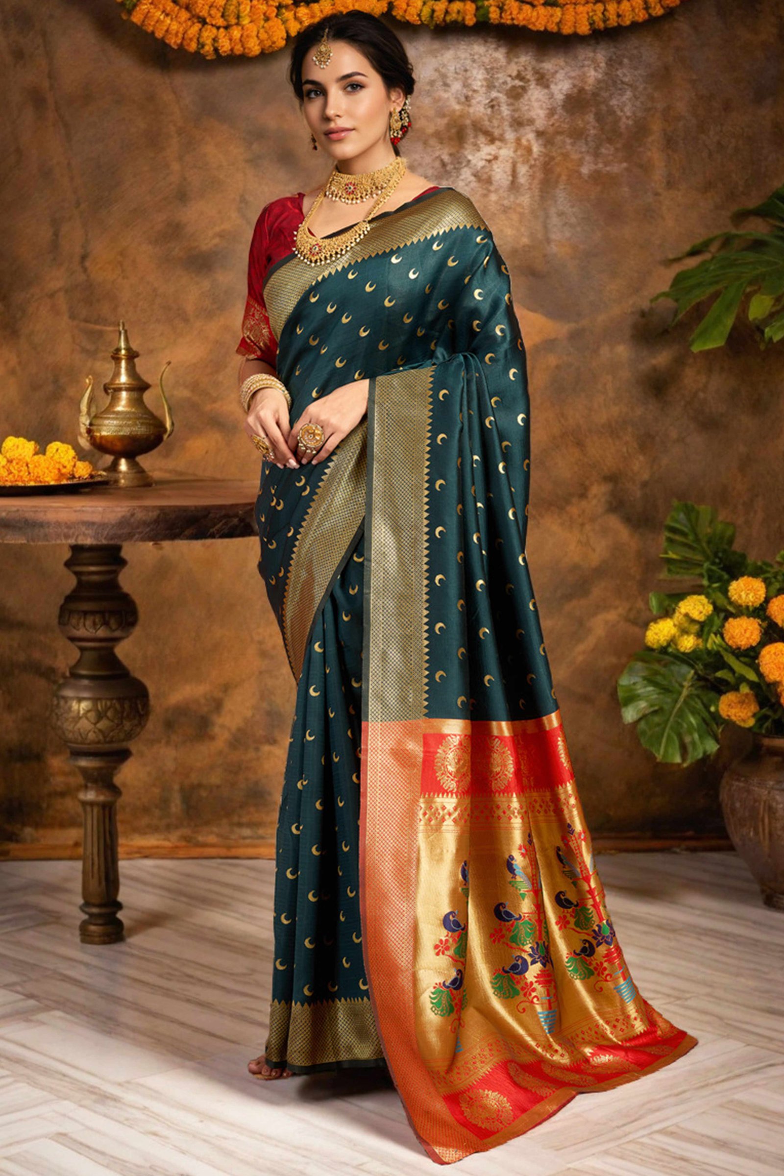 Green Chandrakor Paithani Silk Blend Saree With Intricate Zari Weaving