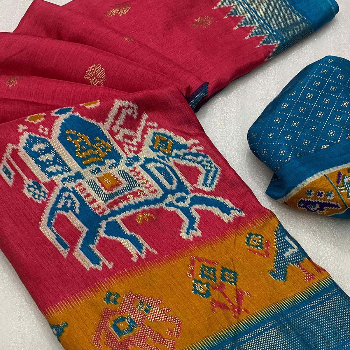 Pink colored saree is made from dola silk fabric which is highlighted with beautiful patola print as shown. Comes along with unstitched dola silk blouse piece which you can customize as per your design/style. Occasion – You can wear this saree for festive and functions. Note:- the actual product may differ slightly in color and design from the one illustrated in the images when compared with computer or mobile screen.