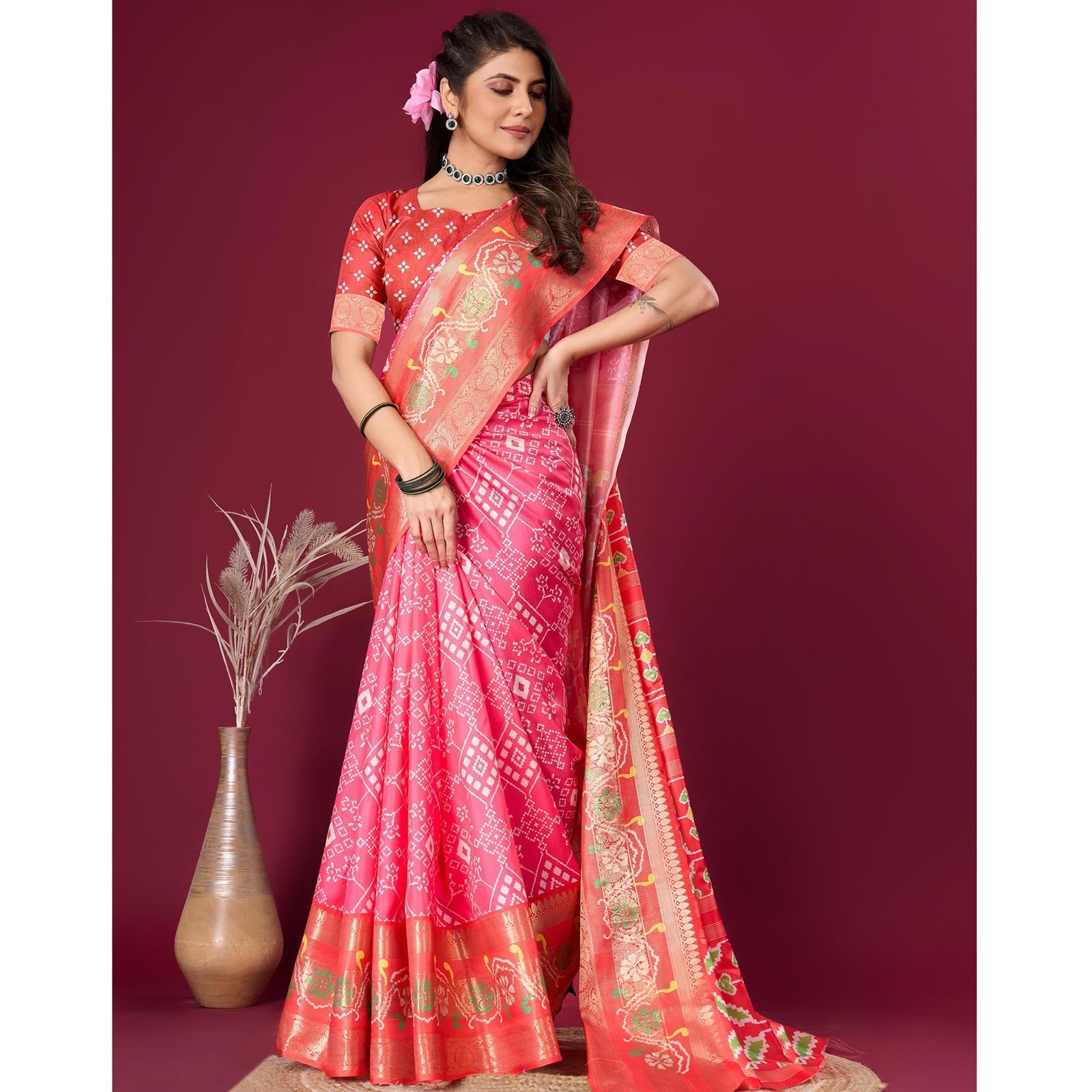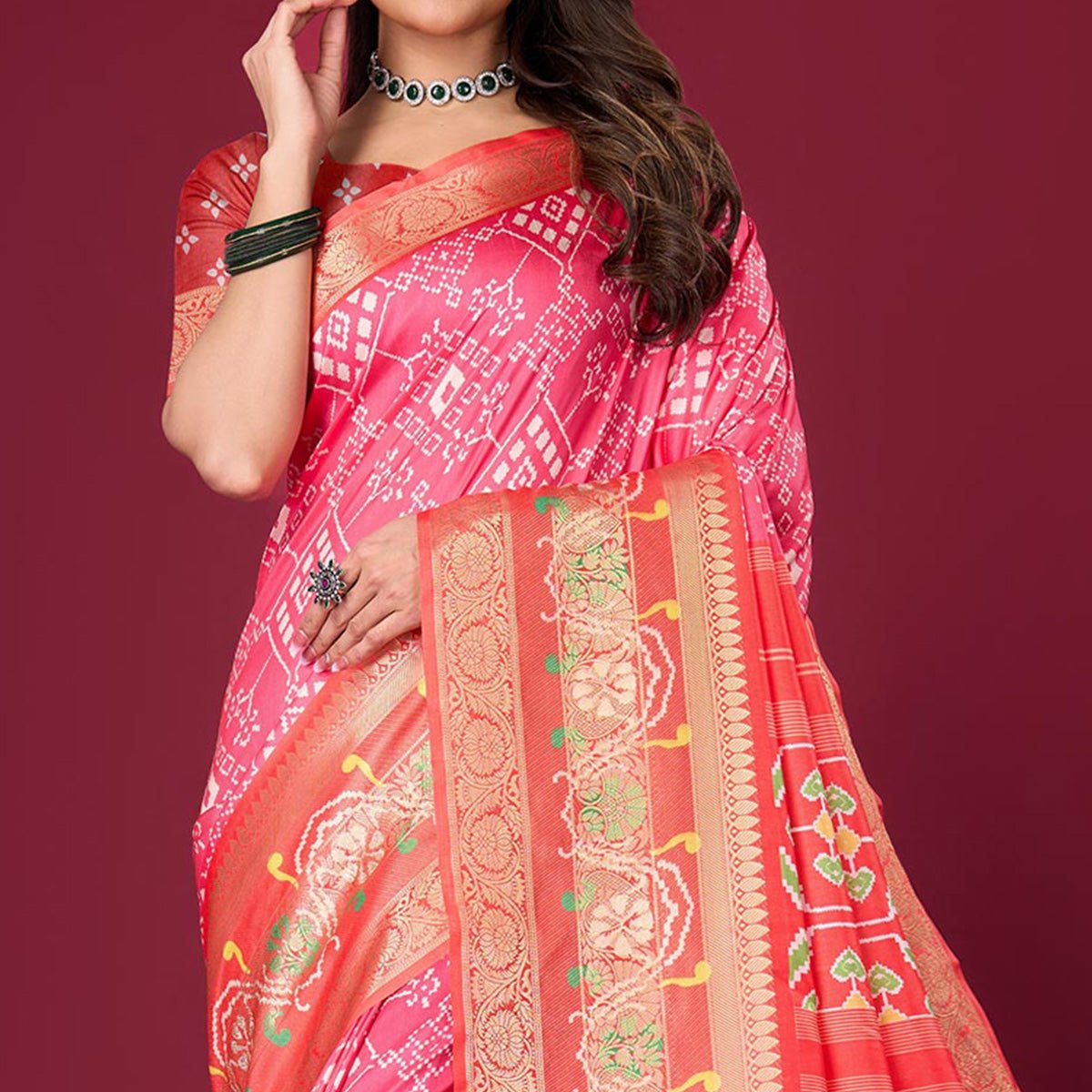 Pink & Red colored saree is made from dola satin fabric which is highlighted with beautiful digital printed with weaving border work as shown. comes along unstitched doal satin butta work blouse piece which you can customise as per your design/style. Occasion – You can wear this saree for festivals, functions and ideal for any fashionista. Note:- the actual product may differ slightly in color and design from the one illustrated in the images when compared with computer or mobile screen.
