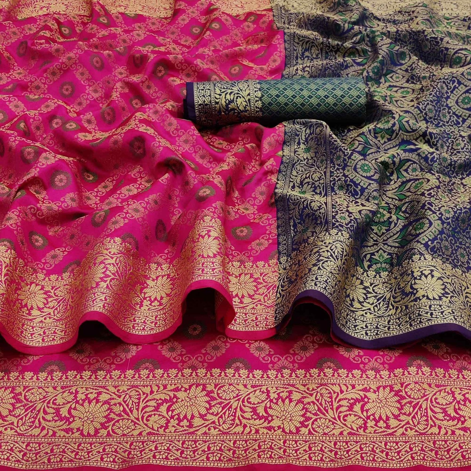 Rani Pink Festive Wear Woven Silk Saree With Patola Rich Pallu