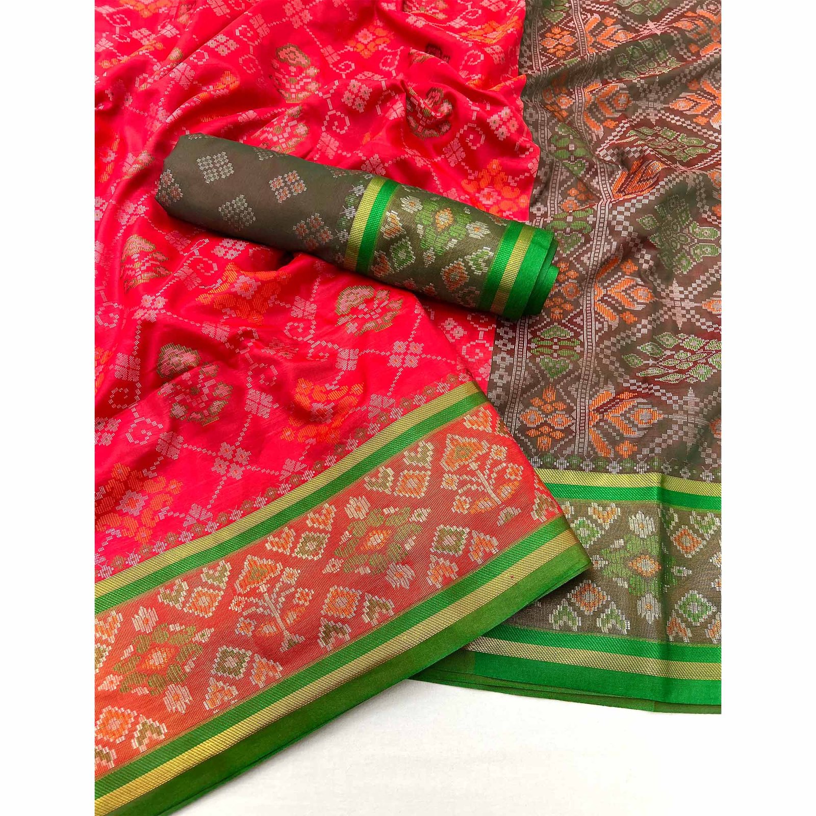 Red colored saree is made from patola silk fabric which is highlighted with beautiful weaving work as shown. Comes along with unstitched jacquard blouse piece which you can customise as per your design/style. Occasion – You can wear this saree for festive and functions wear. Note:- the actual product may differ slightly in color and design from the one illustrated in the images when compared with computer or mobile screen.