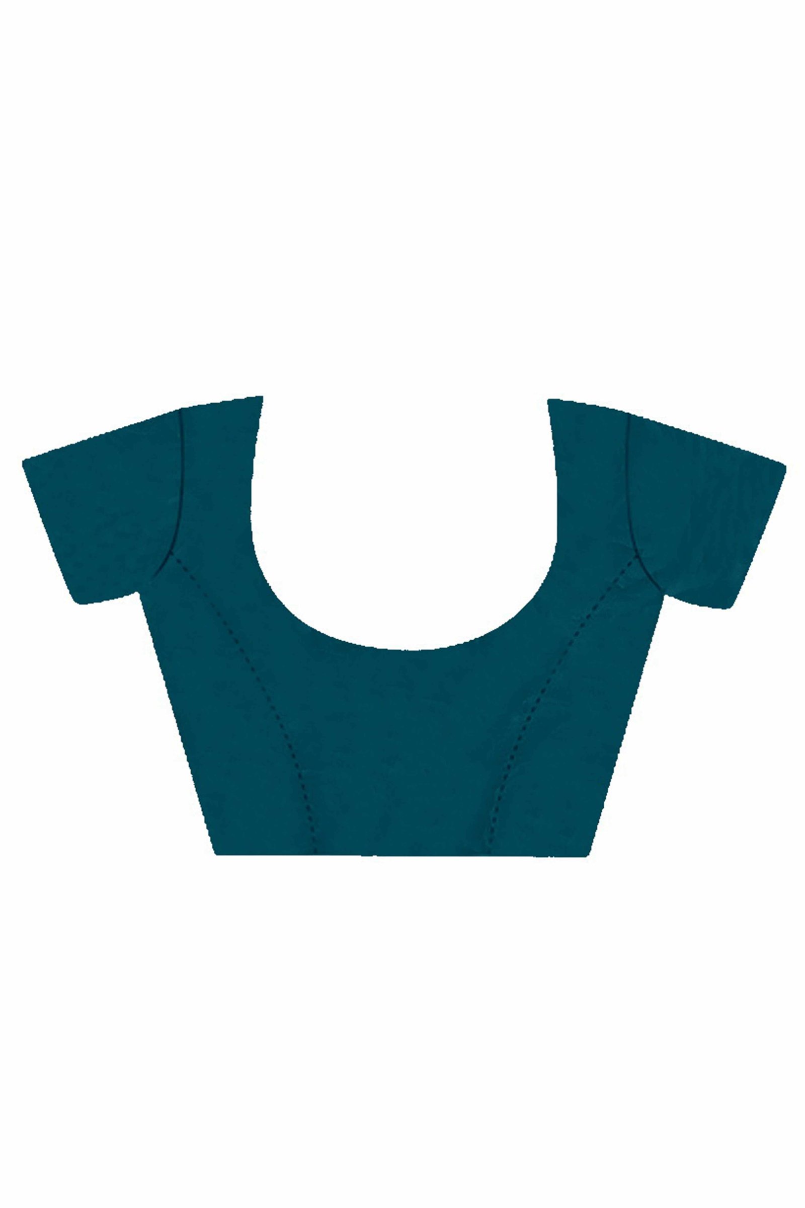 - Custom Blouse Option: Comes with an unstitched mono silk blouse piece in a matching solid tone, featuring embroidered sleeve borders—perfect for crafting a personalized, designer fit.