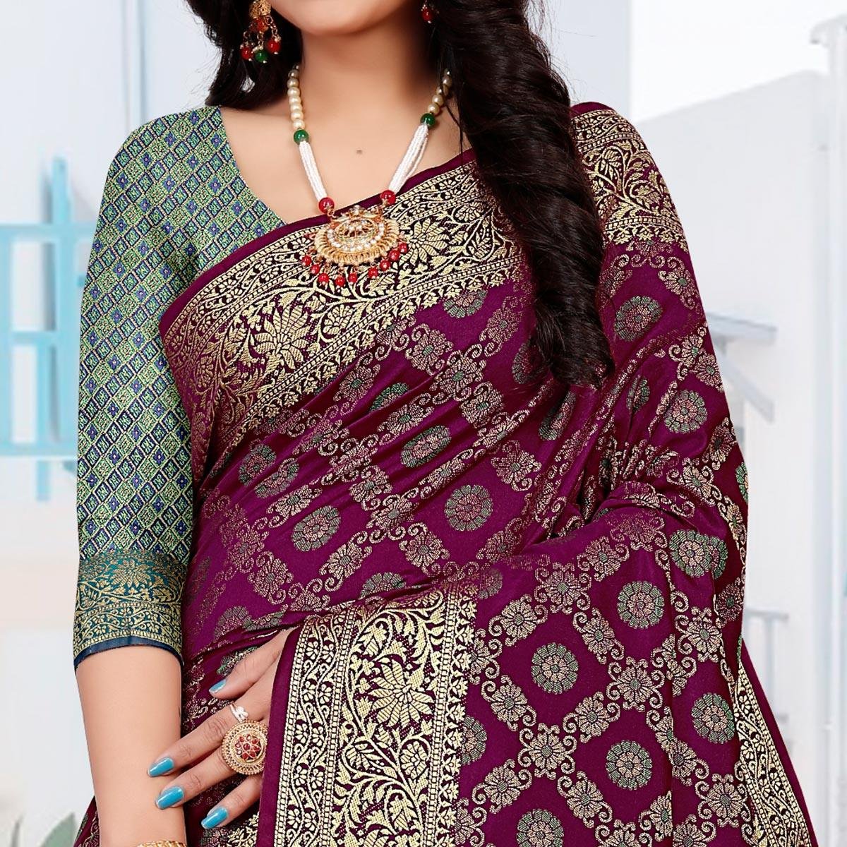 Wine colored saree is made from silk fabric which is highlighted with beautiful weaving work with patola rich pallu as shown. Comes along with unstitched jacquard blouse piece which you can customise as per your design/style.Occasion – You can wear this saree for festive, special occasion, ideal for any fashionista. Style it up – Look glamorous in this traditional saree. Pair this saree with Ethnic Gold Jewellery, beautiful clutch to complete the look!! Note:- The actual product may differ slightly in color and design from the one illustrated in the images when compared with computer or mobile screen.