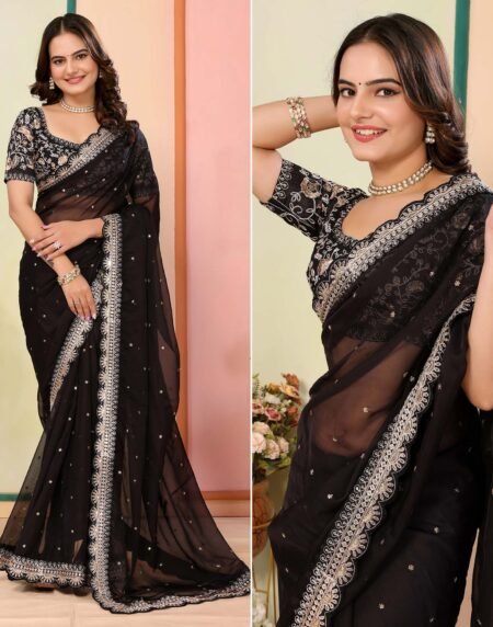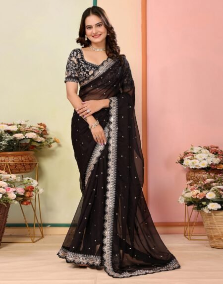 Yellow colored saree is made from crystal arti silk fabric which is highlighted with beautiful cording sequins embroidery with bandhani printed work as shown. Comes along with unstitched bandhani printed with cording zari embroidered dola silk blouse piece which you can customise as per your design/style. Occasion – You can wear this saree for festive and functions. Note:- the actual product may differ slightly in color and design from the one illustrated in the images when compared with computer or mobile screen.